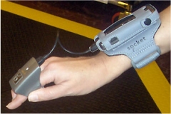 A recent improvment is that bluetooth technology has eliminated the need to connect the scanner to a larger transmitter, often worn on the hip. In some cases the transmitter is built right into the wrist unit. The removal of the wire means fewer equipment failures and better mobility.