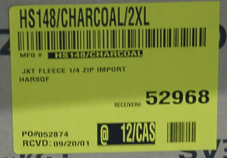 | Developing standardized labeling for pallets and cases can help your receiving operation. Try to get your vendors to provide standardized labelling can include both human readable information and bar coded information, such as a bar coded PO number. |
